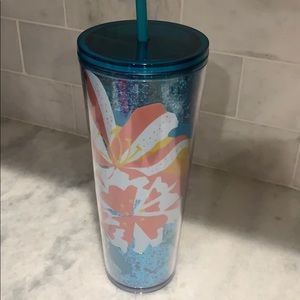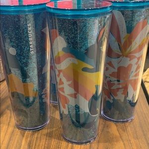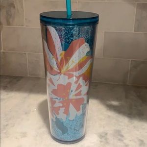 New Starbucks tumbler. So cute. Blue sparkles with flowers in different colors. Pink, yellow, and peach. So pretty. I love these. I ship within the same day.