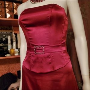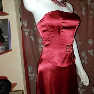 ❤NWOT- Gorgeous Red Satin Strapless Gown w/ Belted Waist ❤