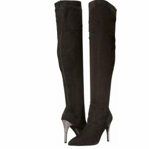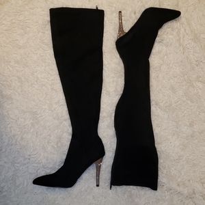 Nina Rocklin-Fy Rhinestone Heel OTK Black Boots