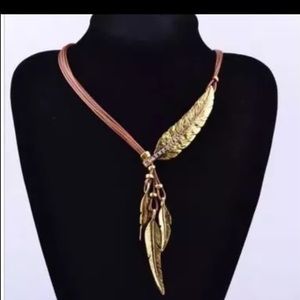Bohemian Style Black Rope Chain Feather Pattern Pendant Necklace For Women Fine Jewelry Collares Statement Necklace #163