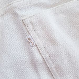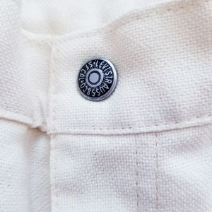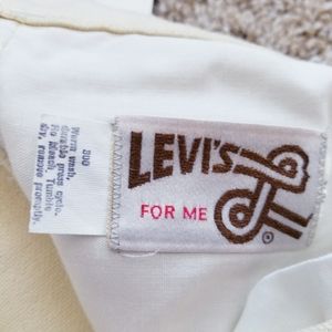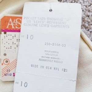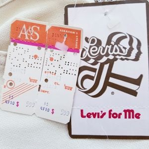 These Levis were in storage and purchased by a family member Most info on internet deals with only Levis jeans Please note all Levis are dated & have a PC9 # (product code) this code can tell you when a pair was made. The number on the back of the waist button will match the number on the care tag ALL levi's with a capital E in LEvis were made in 1960's Lower case e was introduced in 1970 The Care tag was NOT implemented in Levis pants until 1971