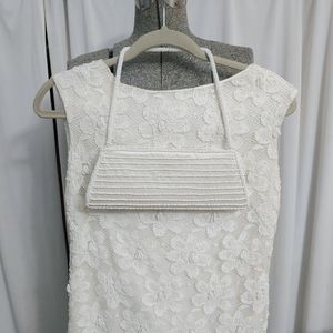 Fantastic 1960s style Shift type dress with matching neck choker, purse, & gloves. It could serve to be lightly cleaned, but not sure it was ever worn!! Wedding? Cruise??