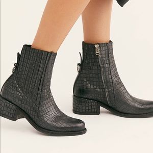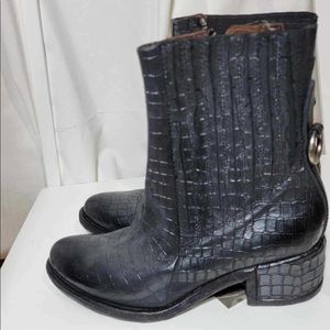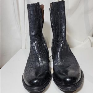 Stop it out in these so cool leather ankle boots featured in a textured snakeskin style with hardware ring accents on the back. A.S.98 creates inspired, dynamic bags and footwear, handmade with a focus on details and craftsmanship. This is a collection for the confident and authentic, the lovers and dreamers, the woman creating her own paths and living by her own rules.