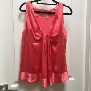 NWOT! Zara Luxe 100% Silk Peach colour Top Sz L. Empire style. Bow shape over bustline with vertical pleats falling from the centre of the front. Zipper on the left side. The silk is delicate and features natural imperfections. Dry clean only.