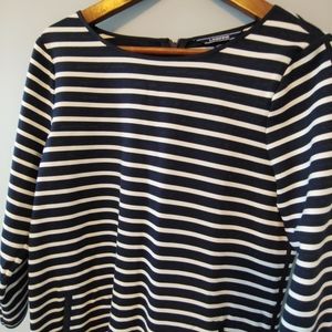 Land's End Navy Blue & White Stripped Shift Dress.