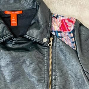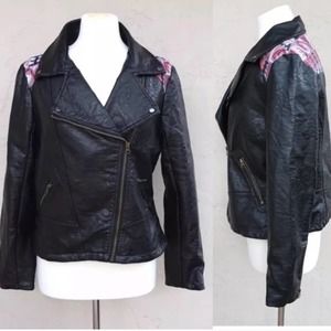Chelsea And Violet Womens Black Moto Boho Biker Jacket W/ Design Full Zip