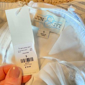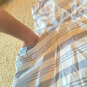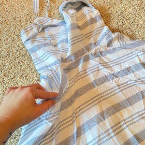 Size small, NWT from francesca's. White with cute blue stripes. Fitted bodice and then the skirt flares out. Adjustable straps. ANDDD pockets! Great summer dress.