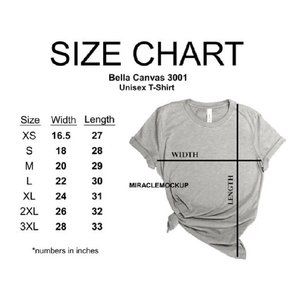 Shirts are made to order! These shirts are unisex sizing, and the Bella + Canvas brand. They are unisex sizing and a sizing guide is included in picture two for your reference. Shirts are soft and made of airlume combed and ringspun cotton with 1% polyester, and is a lighter weight t shirt. (4.2 oz) It is preshrunk as well. The shirt is heather gray with white letters.