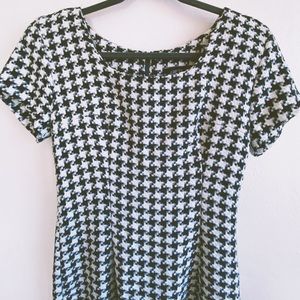 50s 60s Vintage green & white herringbone mod secretary shift cocktail dress. Fitted. Zip up back. Tweed. Womens size 6.