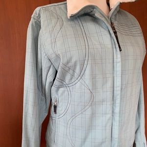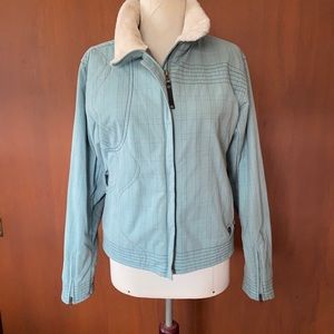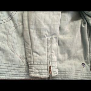 Mountain Hardware short coat. Light blue color with unique stitching all over. 2 pockets inside, 2 pockets outside. Fleece around hem, neck and cuffs. Zip sleeve at wrist. Size small approximate measurements 21” length, 18” P2P. Nice mid weight perfect for chilly spring or fall day.