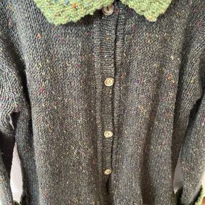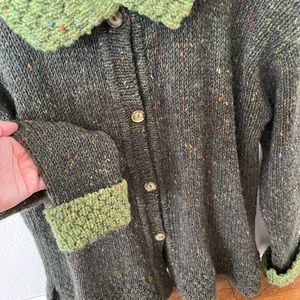 Vintage Glendalough Woolen Mills Collared Cardigan Green Multi Color Speckle Handmade in Ireland 100% Wool size L. Folded cuffs. Button Front. See measurements. Condition is "Excellent Pre-owned". Looks new!