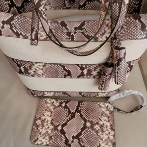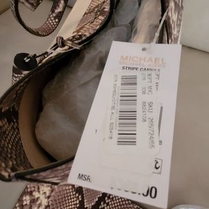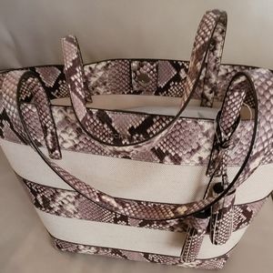 Beautiful Medium Size Brand New With Tags Michael Kors Tote with Neutral colored snake print and linen fabric.