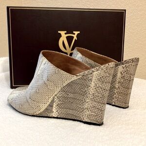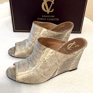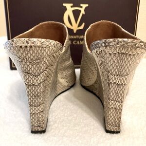 VC Signature Collection by Vince Camuto Snake Embossed Leather Wedge Mules