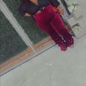 Super stretchy Velvet Pants, high waist, long fit, burgundy color