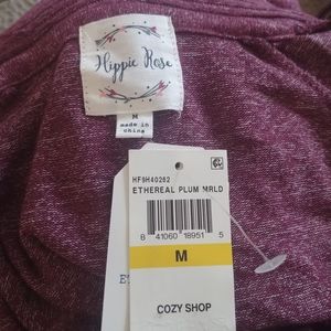 Hippie Rose cardigan, ethereal plum, size M , front pockets, 70% rayon, 27% polyester, 3% spandex, 31 1/2" length
