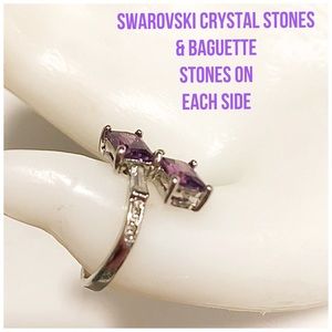 BRAND NEW WITHOUT TAGS 💜 Simulated purple amethyst with 2 CZ baguettes with swarovski crystals 925 sterling silver stamped, layered twit style ring. Bright brilliant colored stones with beautiful cuts. ✅ Size 9. Stunning! BRAND NEW, never worn. See pictures for stone details.
