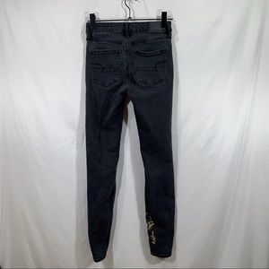 American Eagle Outfitters Next Level Hi Rise Jeggings Women’s Size 4L. V7 Bleached on one leg otherwise regular wear