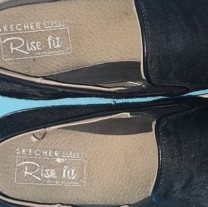 Fashion-forward design & fun vintage style of the SKETCHER Street Uplift - Furry Friend shoe. Soft fur-textured cavallo leather upper in a slip on classic platform-soled sleek sneaker with stitching accents. Rise Fit insole, internal wedge heel.