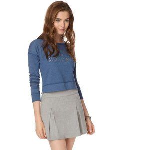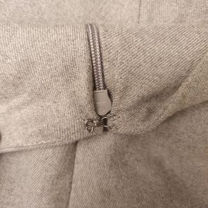 Heavier fabric, soft. Hits mid thigh. Side zip with hook clasp. Worn once.