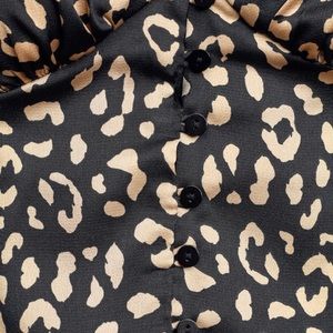 Cambera Black Leopard Print Satin Button-Up Crop Top