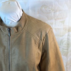 Christopher & Banks Tan Faux Leather Jacket Full Zip XL