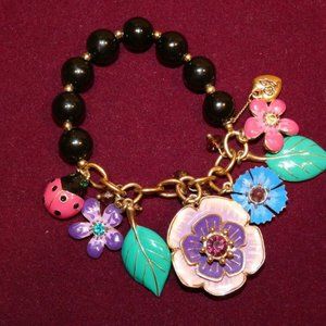 Betsey Johnson multi-color enamel flower charms beaded stretch fashion bracelet. Great Condition.