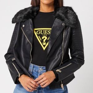 Guess Tasha jacket black faux leather moto