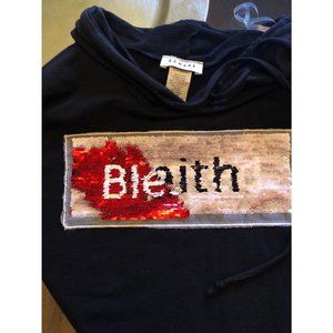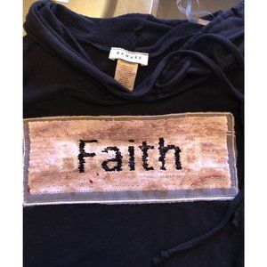 Unique Beware black crop hoodie top with sequin blessed / faith appliqué.