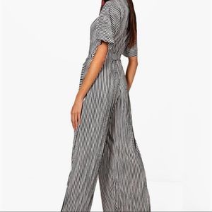 NEW Boohoo Maya Plunge Striped Culotte Jumpsuit