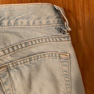 Two special spots of love are seen in the last two photos. I think repairs could be made, if desired. No other holes, flaws, or stains. Jeans with this particular Long and Lean label are extremely rare.