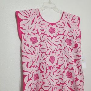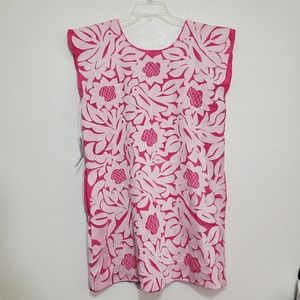 Mia pink and white round neck dress with pockets