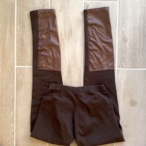 Made in Italy. Brand new, never worn brown leggings with brown leather design. Very cute and comfortable.