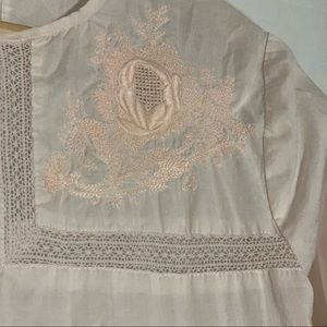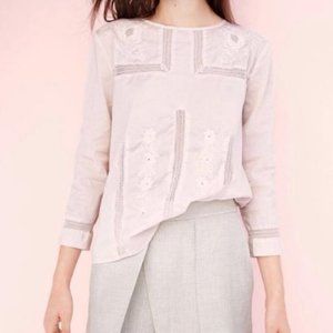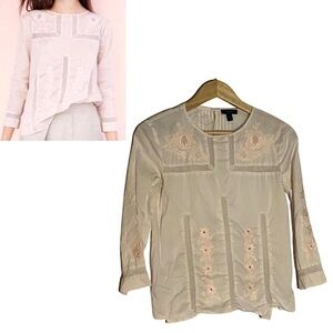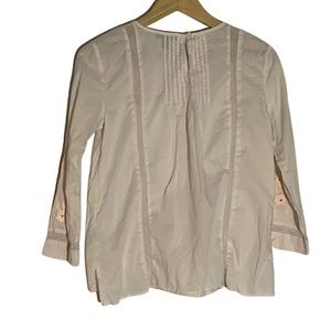 J.Crew Pink Eyelet Lace Blouse | Floral embroidery on shoulders, lightweight/breathable, 2/4 sleeves, back button closure, relaxed fit