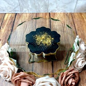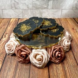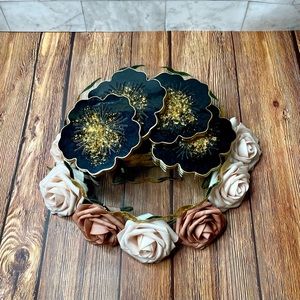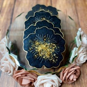 Tags: flower coasters, resin, resin coasters, set of 4, coaster set, gift idea, gift set, black and gold