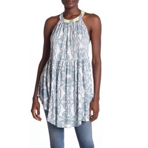 Free People Mimi Printed Halter Neck Tunic Top