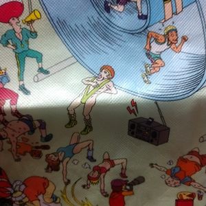 Please look closely at details of cartoon graphics, prior to purchase... LOL! This is a VERY detailed and unique item and amazing artwork that wraps around every inch of the tote bag and strap! This was a one time run of this design, and VERY limited print! You had to win a contest in order to get one, and I did! I've cherished it in my collection for years!