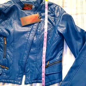 Enjoy this Blue NWT Vegan Moto Leather Jacket by YOKI.