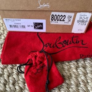Christian Louboutin Neofilo round toe nude patent heels in excellent preowned condition. Please see pictures for signs of wear. Comes with box, dust bag and extra heel rubber pieces with its dust bag as well