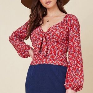 The Sweet Simplicity Long Sleeve Top is a beautiful yellow dainty floral print top. It has a sweetheart neck sline that ties at the bust for a figure flattering fit.