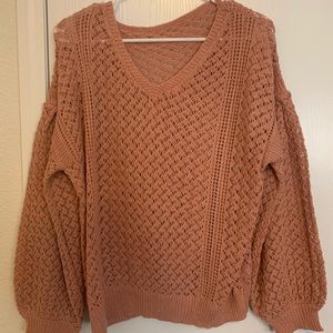 Light, mesh/see through, crop sweater. Never been worn, straight from boutique before sale. Salmon pink.