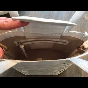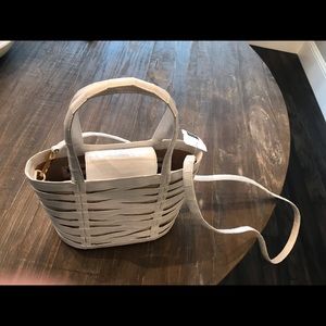 @selmarose Yes it is white with a beige raffia material beneath the other layer. It is new and has an original Saks 5th Avenue tag that is attached and an additional tag with the description and price that is inside the bag and unattached.