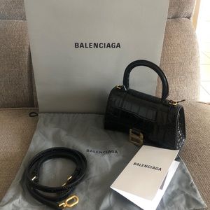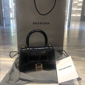 Authentic Balenciaga Black Croc XS Hourglass Bag