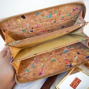 • Gold zipper with colourful cork material. Very lightweight but also durable.