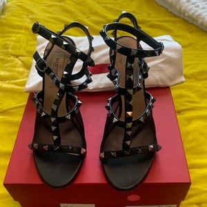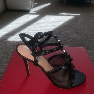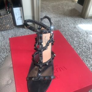 Limited Edition| Valentino Shoes | Rockstud Mesh Stud| Cage Stiletto Ankle Strap Sandal Black.