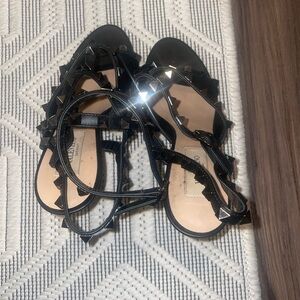 Worn three times, all studs in tact, no fraying, and slight wear on the sole. Extra heel taps, dust bags and original box included.