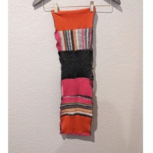 Tags are missing on the scarf but I believe it's cashmere. Pink orange and grays. In excellent condition. 8 in wide and 58 in around.