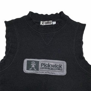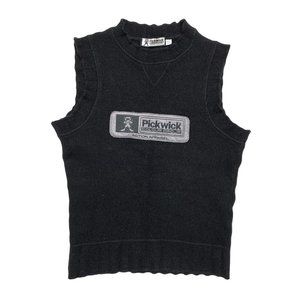 Vintage 90s Y2K Black Wool Embroidered Patch Knit Vest Top