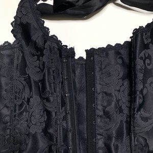 Vintage 90s Y2K Fredericks Black Satin Lace Trim Corset Top
