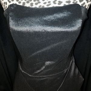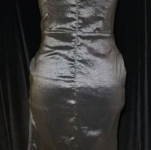Strapless gunmetal dress from Forever 21. Very loved dress and super flattering. Corset or bustier style with six lengths of boning around the upper portion of the dress. Worn, but still in perfect condition. The plastic hanging straps that stay inside the dress have been cut out.