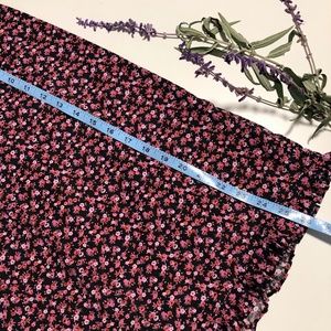 Absolutely comfortable and cute Betsey Johnson floral skirt. Lace-up detail at front with kick-back slit. Perfect transitional piece from spring to summer to fall to winter. Pair with a tank top and sandals during warm months and black tights and a sweater during the cold winter.